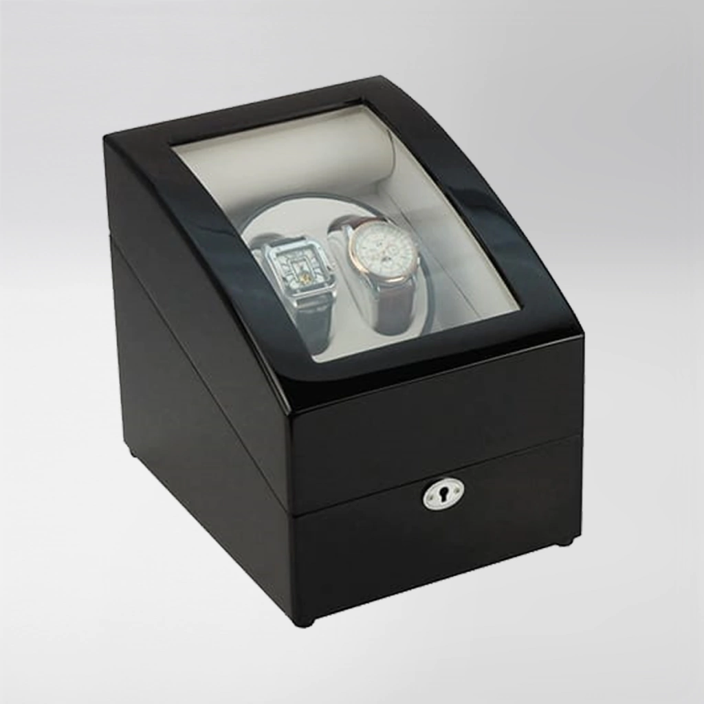 Estuche con movimiento para relojes automáticos o watch winder. Es una elegante caja de relojes automáticos con un dispositivo que gira en su interior simulando el movimiento humano permitiendo de esta forma que los relojes que se guardan no se paren. ¡Tu reloj estará siempre en hora cuando lo quieras usar!